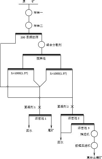 原矿经过制浆、除砂、分级、提纯(磁选或漂白,本文主要以磁选为提纯工艺)、浓缩、改性、压滤,即可获得高岭土精矿产品,这样得到的产品可用于陶瓷或造纸涂料。